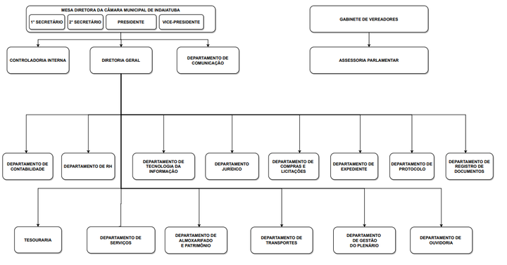 Descrição da Estrutura Funcional da Câmara, com a lista de todos os departamentos, suas atribuições, responsáveis e informações de contato